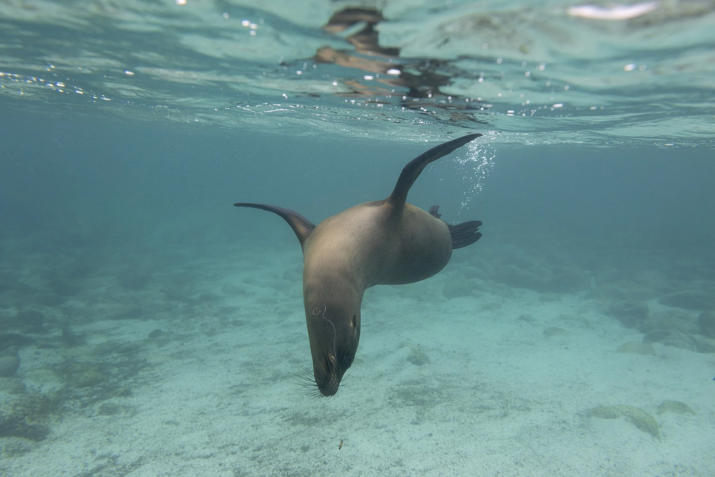 While shooting the sealions performing gracefully in front of us we noticed that one of them had a fish hook in its mouth.